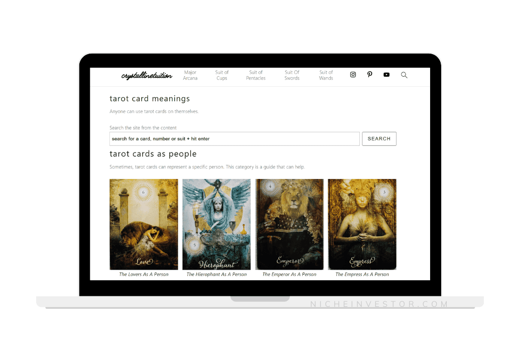 The sale of Crystallinetuition.com includes also includes a YouTube Channel with 108 videos, a Pinterest account, and Instagram account. Whether you have tarot reading knowledge or just getting started, this site is the ideal package to begin your journey with plenty of opportunities to monetize.