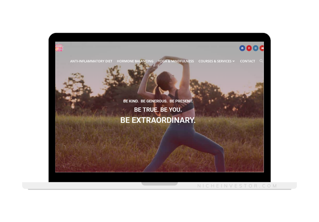 The yoga site is currently averaging $32/month through Monumetric ads. Amazon affiliate links, Product purchases, and courses. Be Extra Yoga has incredible potential to increase its earnings with a new owner who can devote the time and commitment